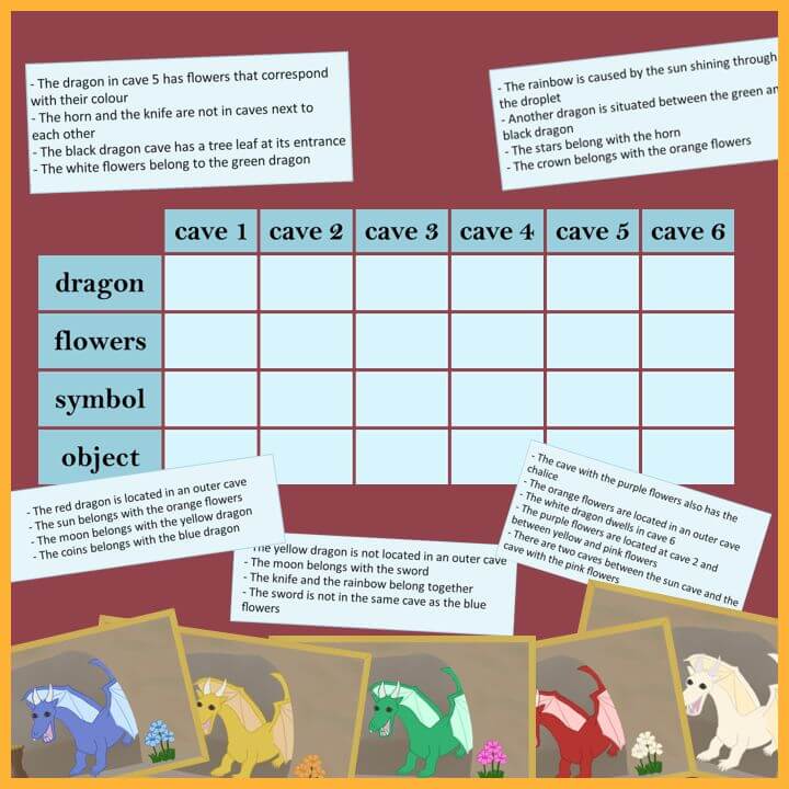 Which dragon is important? What is written on the paper next to the dragon puzzle?